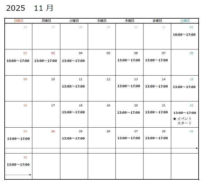 11月のSHOP OPEN日になります。